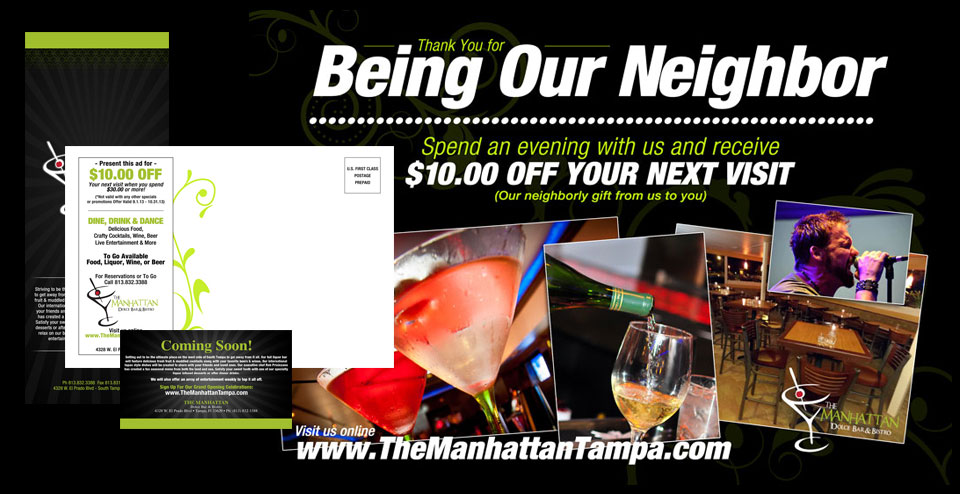 The owners of The Manhattan came to us with an idea for a new bistro they planned on opening and wanted us to develop their identity. The concept of the establishment was based on the manhattan cocktail and they wanted to incorporate that theme into their brand. Offering specialty drinks and an upscale menu, The Manhattan wanted a brand that was sleek yet sophisticated.