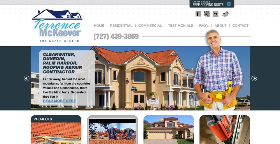 Terrance McKeever is a roofing contractor based in Clearwater, Fl and needed a new website to showcase his work. We worked with Revital Agency and gathered images supplied by the client as well as stock images to develop several comps of the new site. Keeping the brand identity consistent with colors and fonts was required.